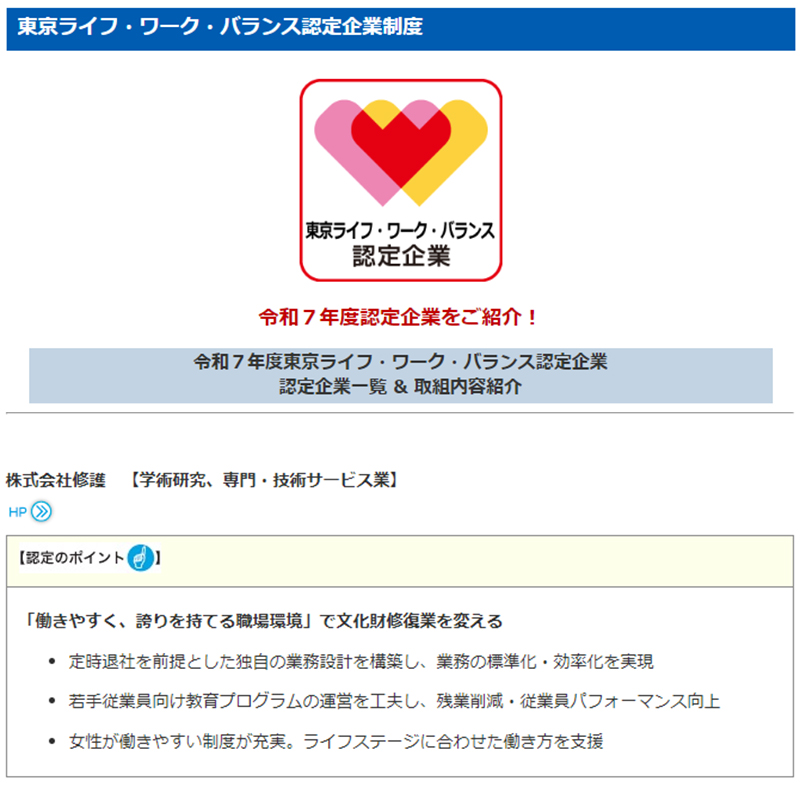 このたび弊社は、東京都が実施する「東京ライフ・ワーク・バランス認定企業」に認定されました。